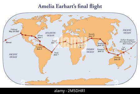 Route map of Amelia Earhart’s final flight Stock Photo Alamy