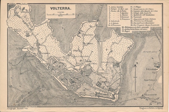 1900 Volterra Tuscany Italy Antique Map Etsy
